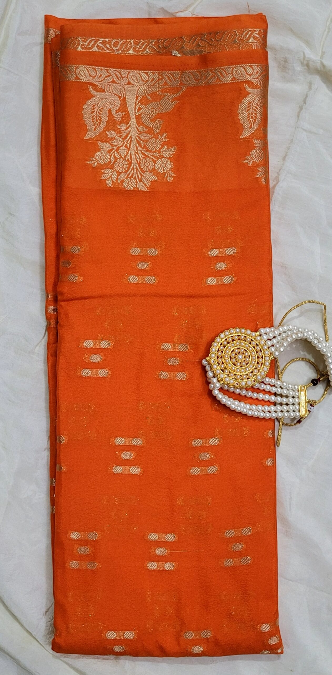 Be the first to review “Banarasi Soft Silk Saree in Royal Orange with Golden Zari Weaves”