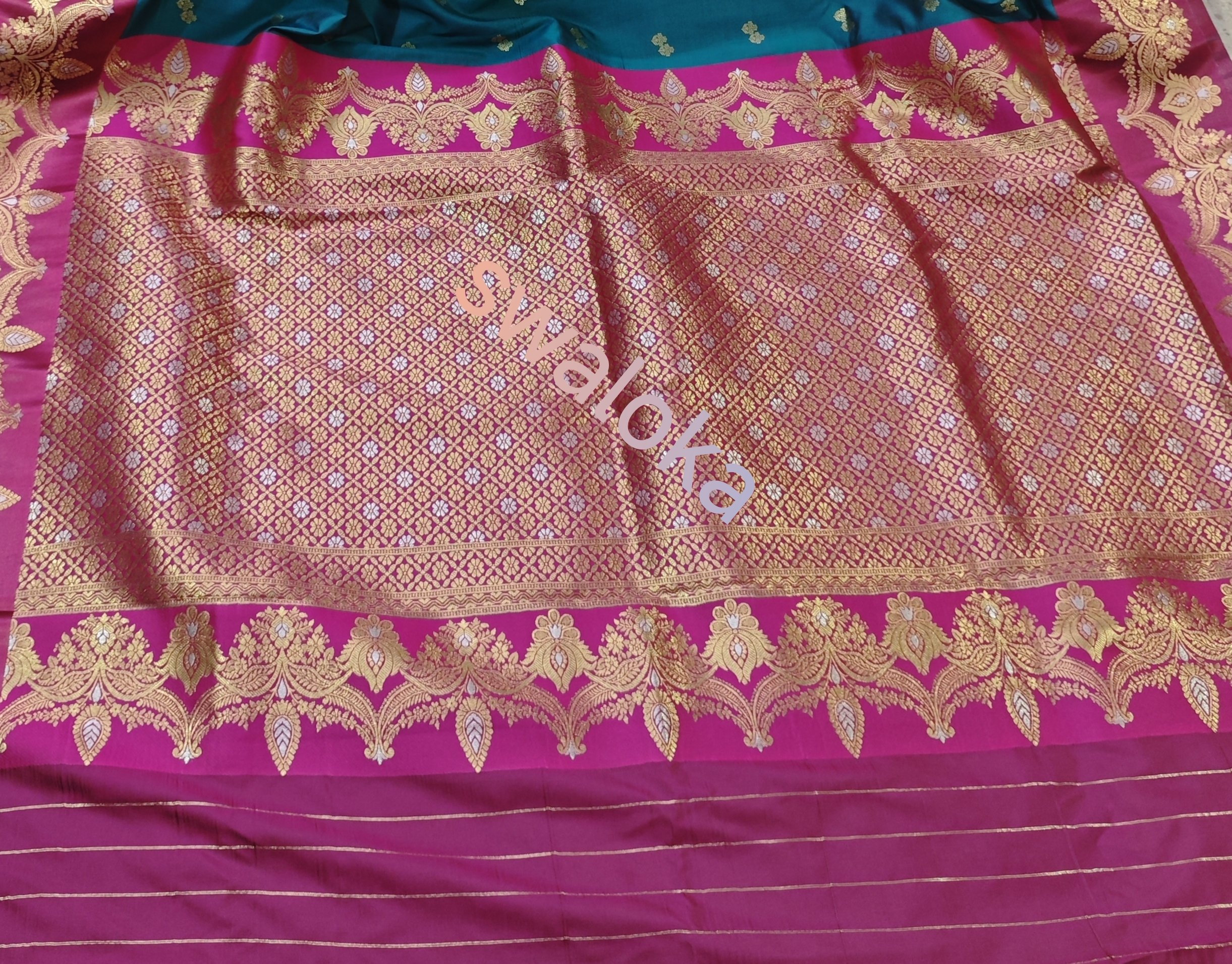 ✔ Design Style: Traditional floral zari border + gold butta motifs