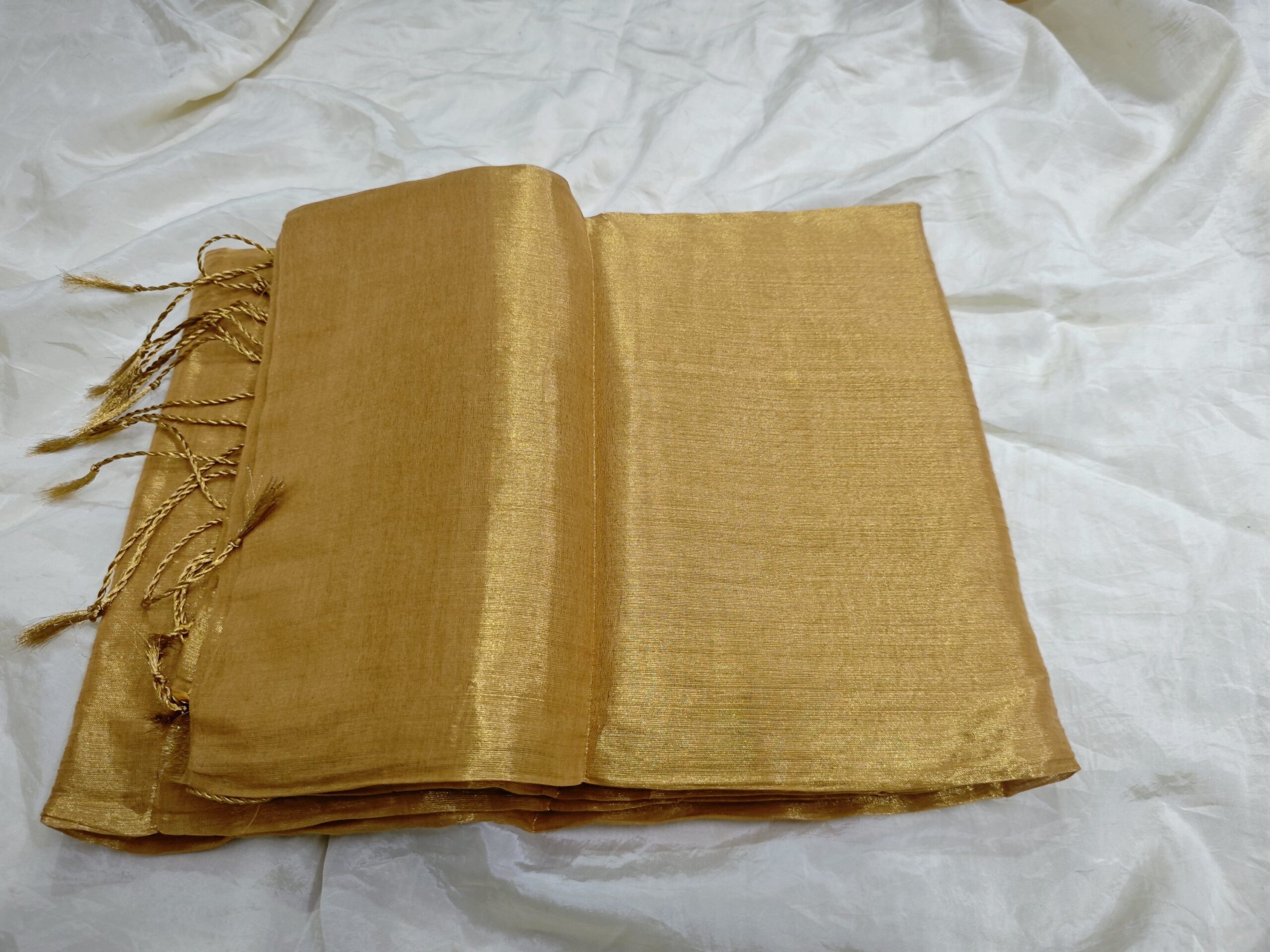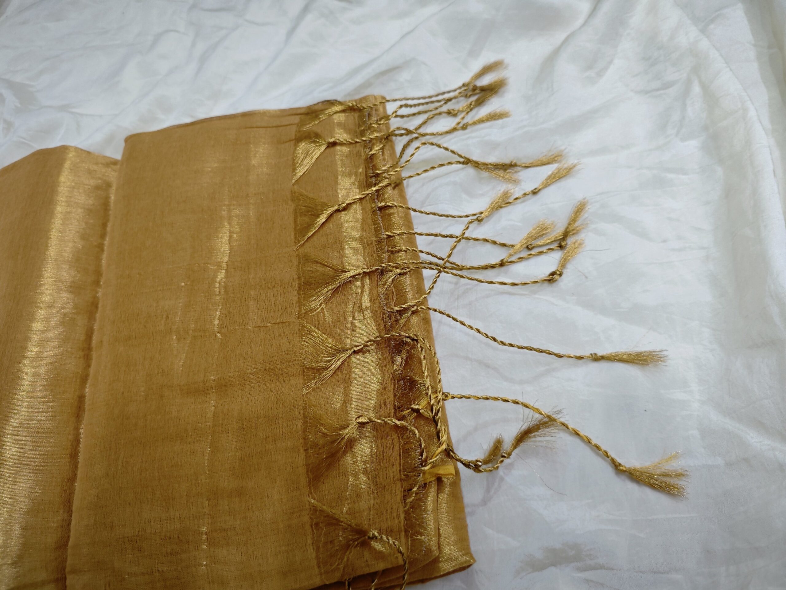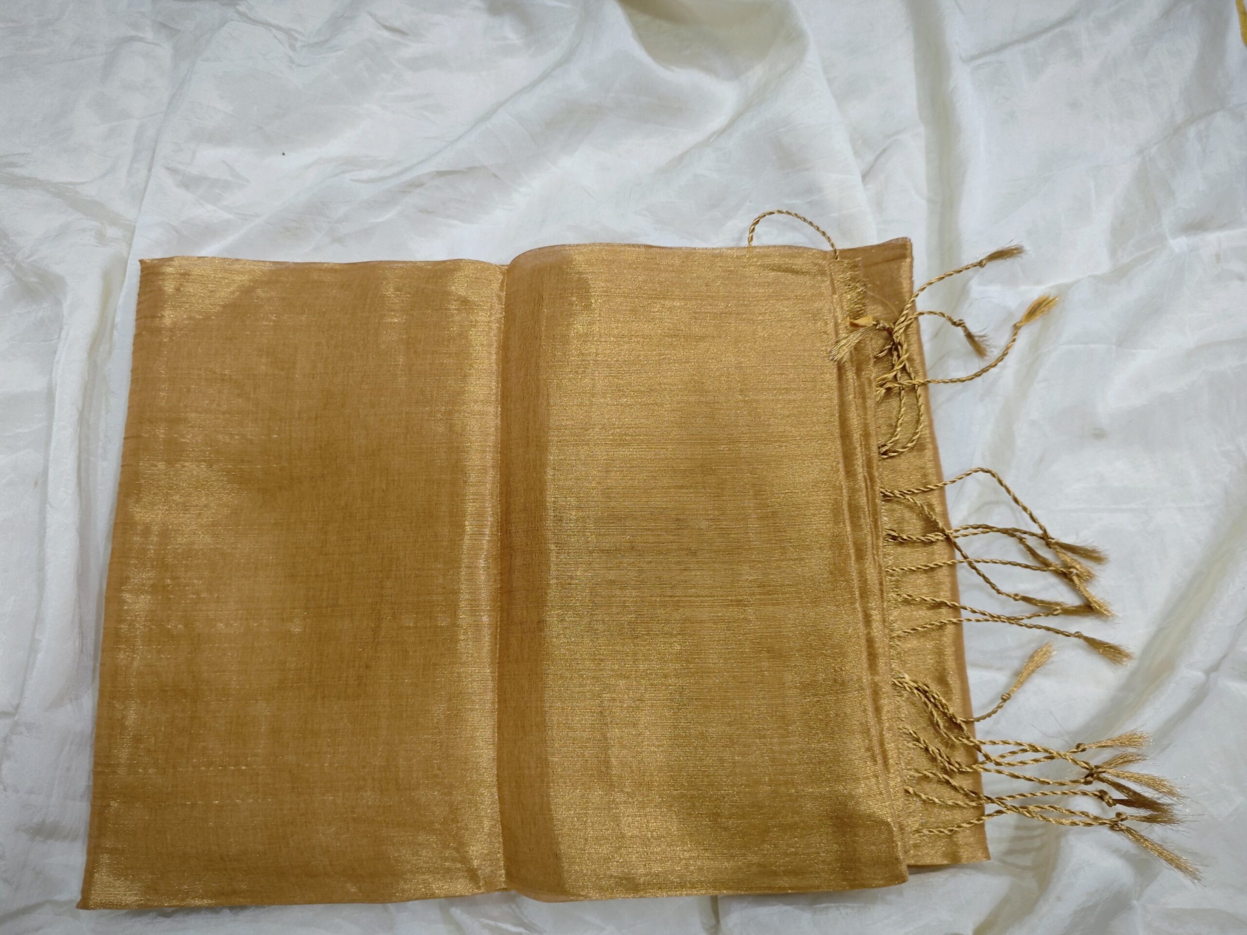 Note: Color may appear slightly different depending on lighting angles and screen brightness. Tissue sarees naturally reflect light, causing tone variations.