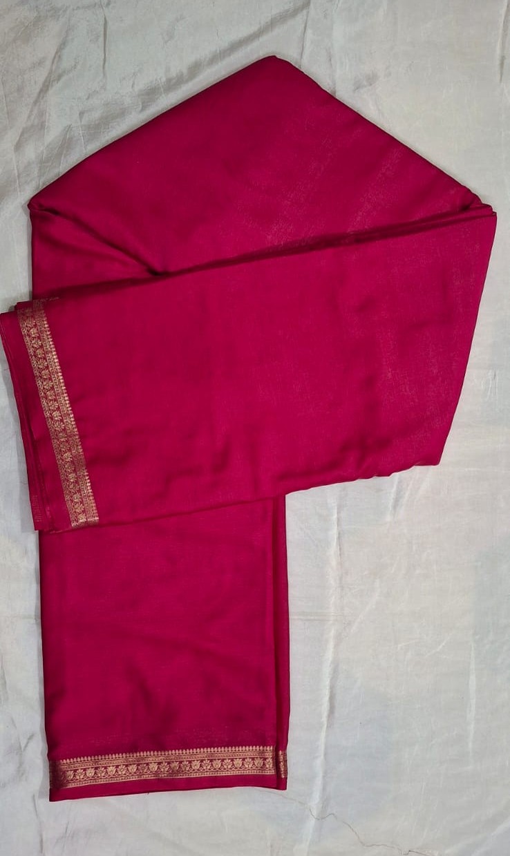 Drape yourself in the rich elegance of this high-quality, premium Japan Crepe saree. The stunning, vibrant Rani Pink (deep magenta/fuchsia) hue immediately captures attention, offering a luxurious and festive look perfect for any special occasion.
