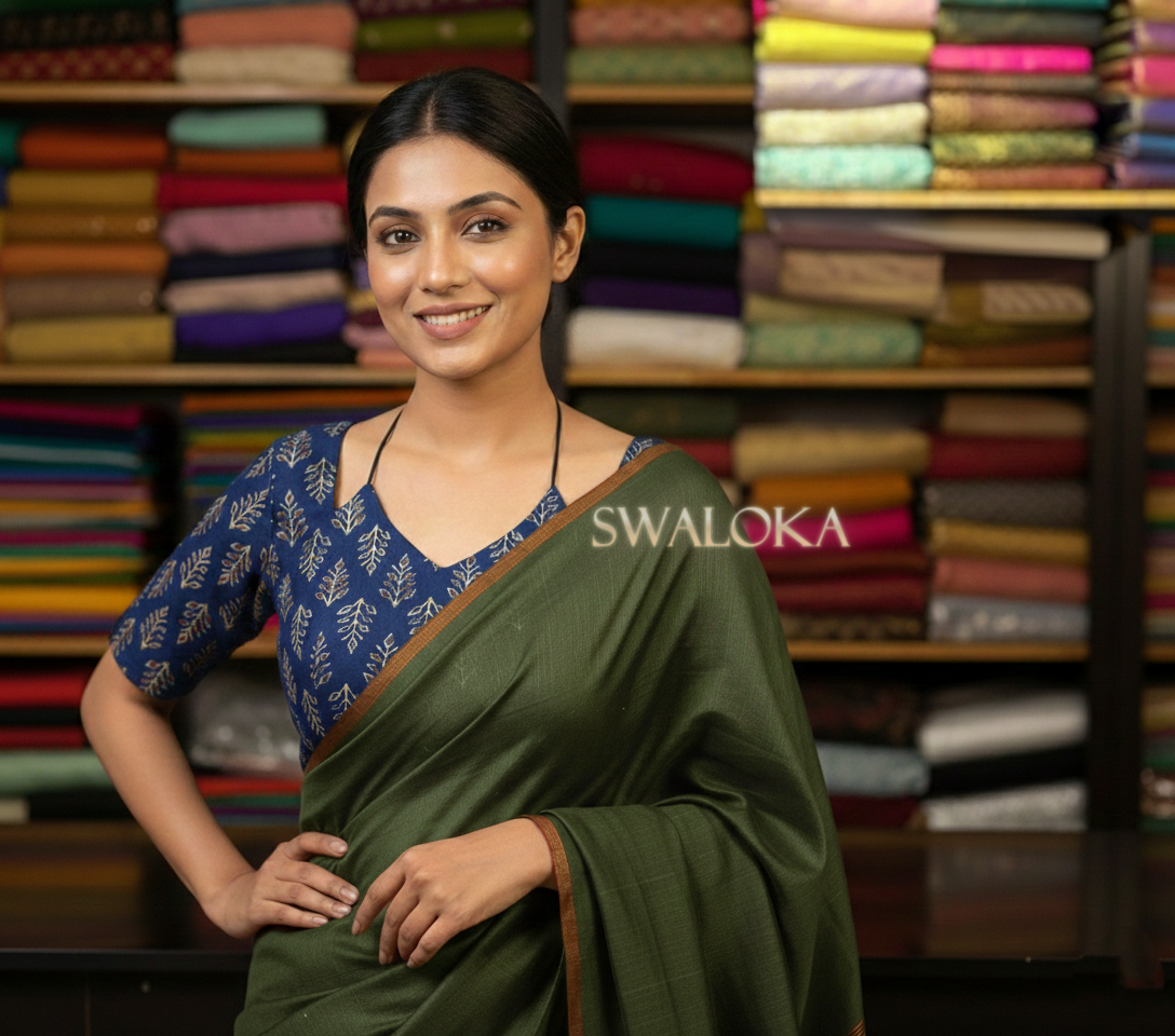 Deep and regal, this Navy Blue Ajrakh blouse is a showstopper. The rich blue hue serves as a perfect canvas for the traditional geometric floral motifs. With its elbow-length sleeves and sleek back-open design, it offers a contemporary twist on a classic Indian craft.