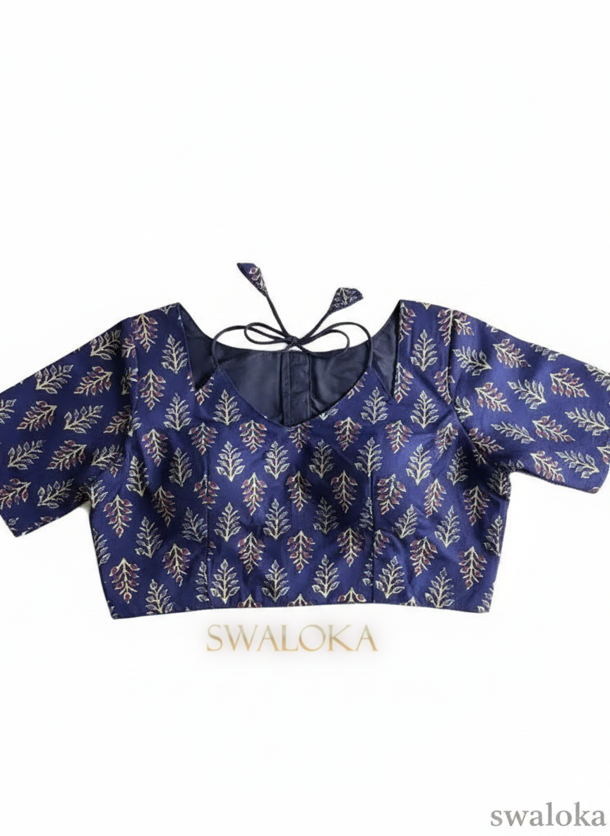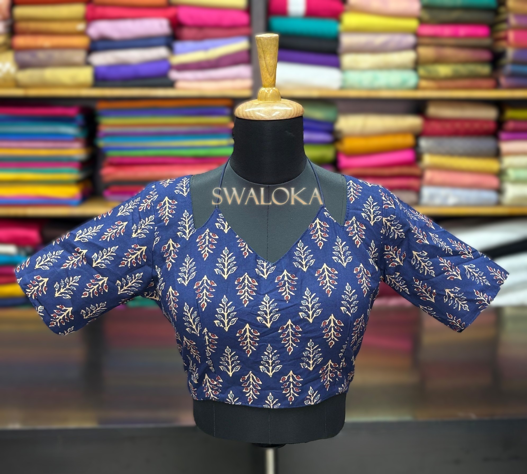 Royal Navy Pure Ajrakh Print Cotton Padded Blouse – Back Open Style