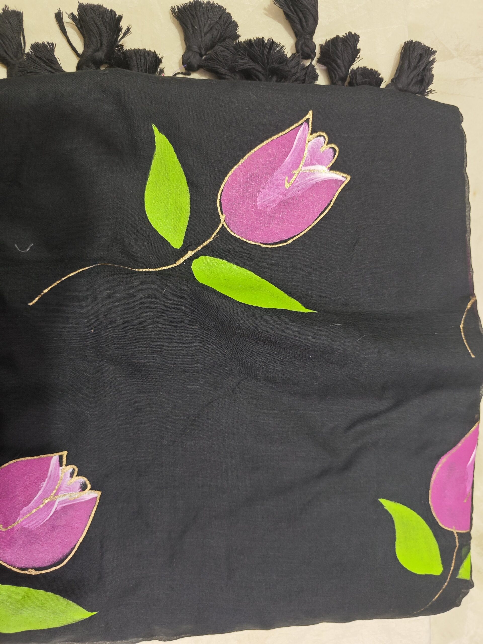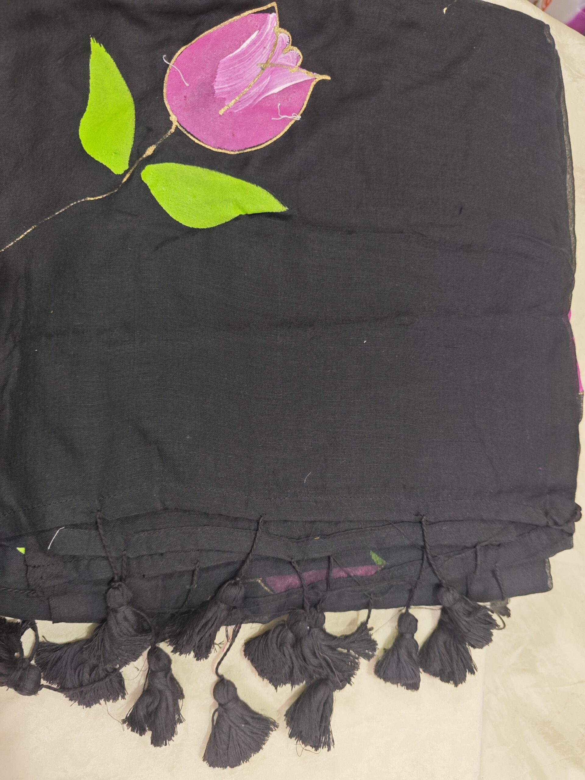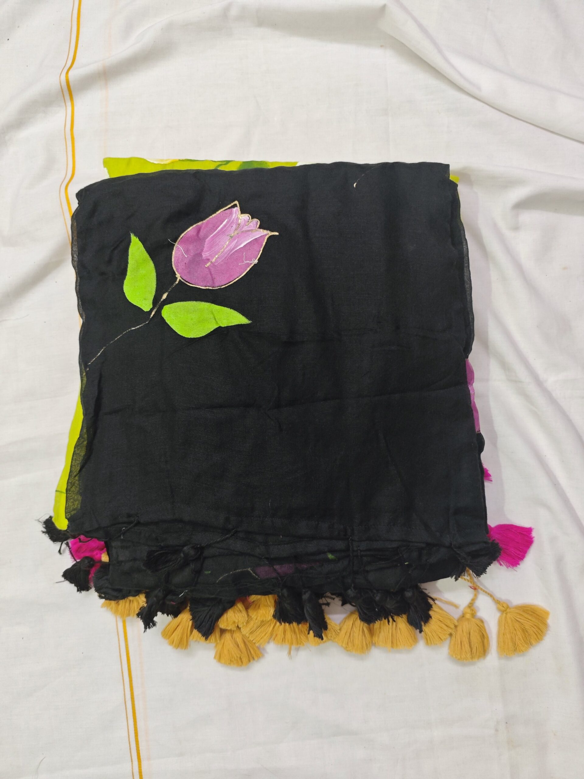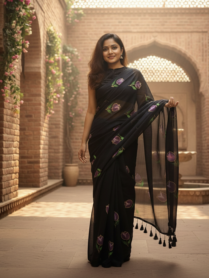 llIndulge in the sheer luxury of our hand-painted MulMul sarees, designed for those who love elegance without the weight. Each piece features delicate, artisanal floral motifs draped over fabric so light it feels like a second skin. Perfectly breathable and soft as a breeze, these “feather-feel” sarees bring a touch of poetic grace to your everyday wardrobe.