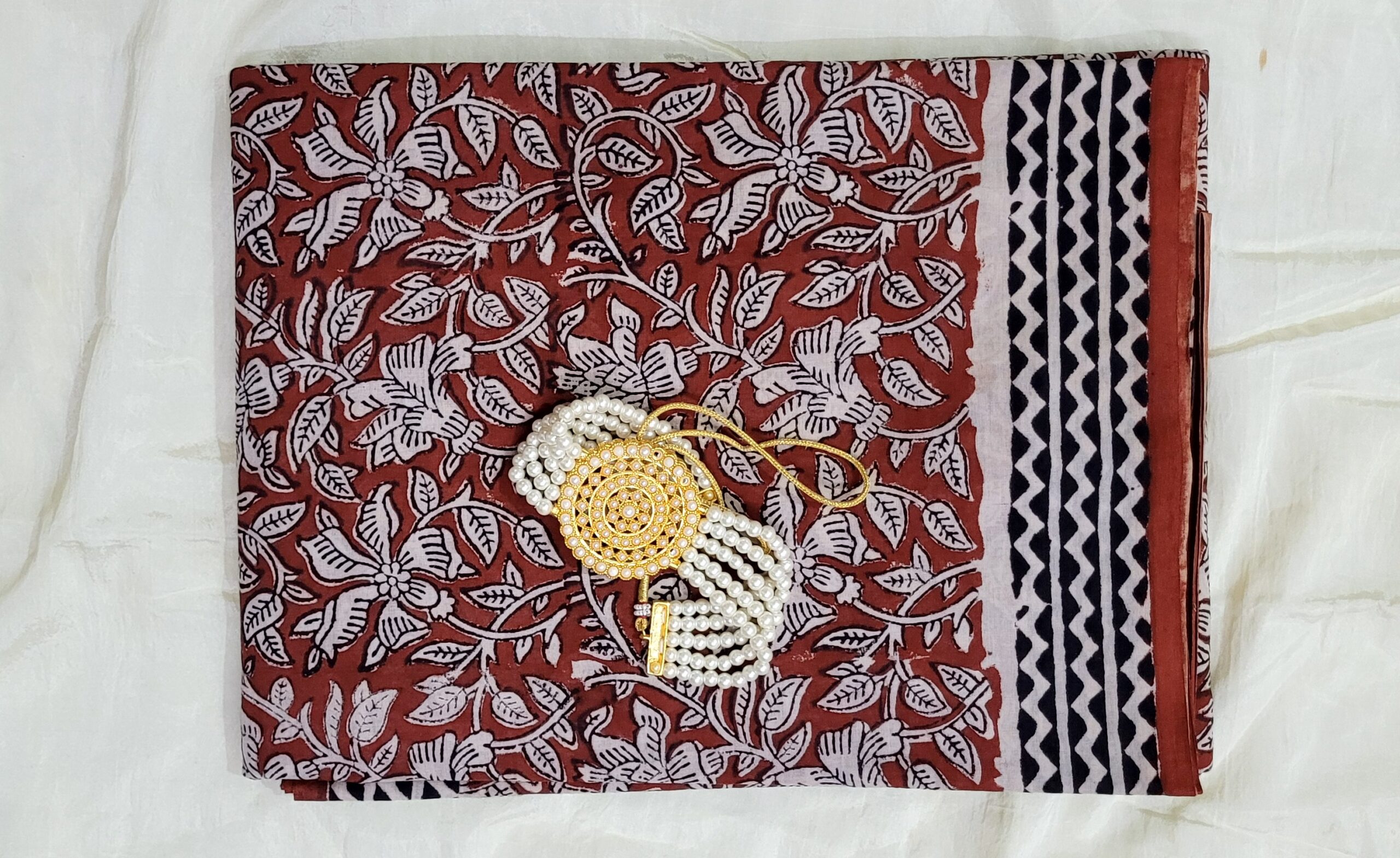 Traditional Hand-Block Printed Cotton Saree – Madder red