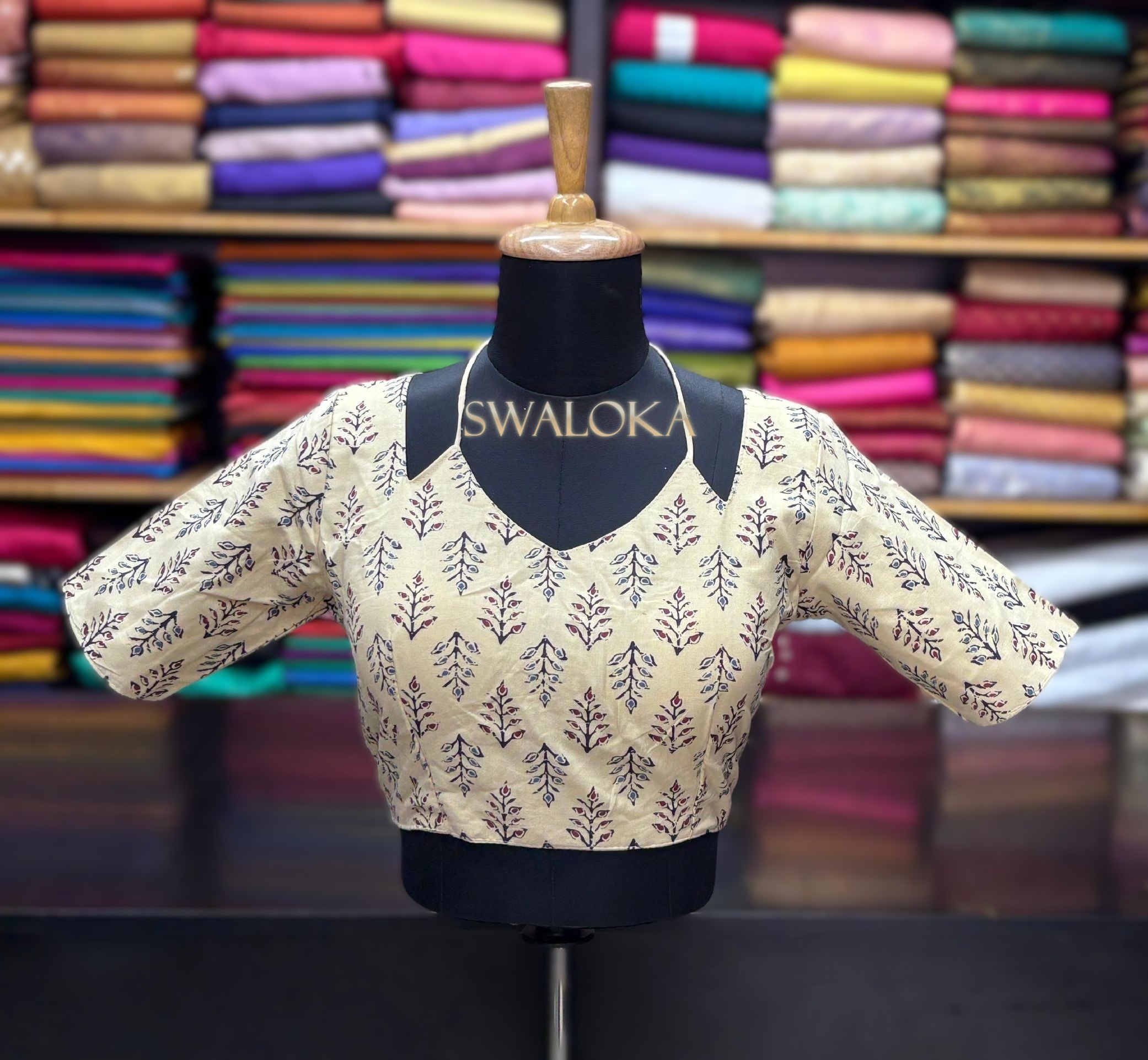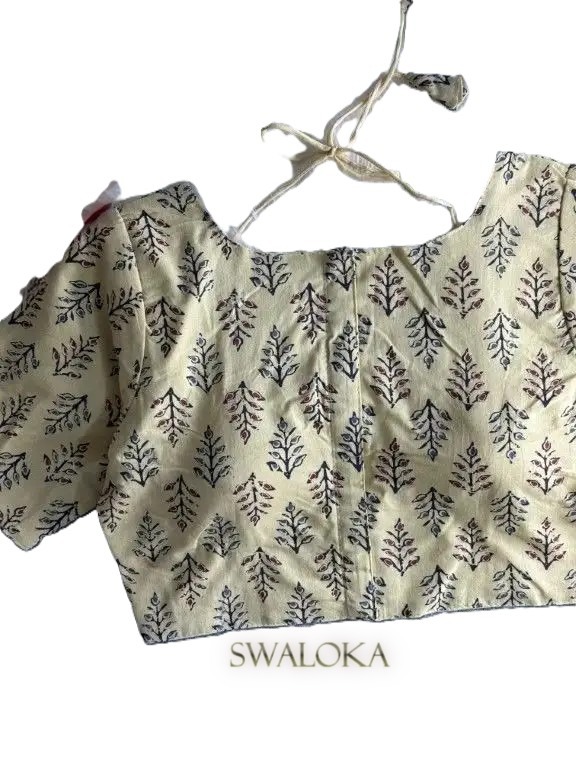 Vintage Cream Pure Ajrakh Print Cotton Padded Blouse – Back Open Style